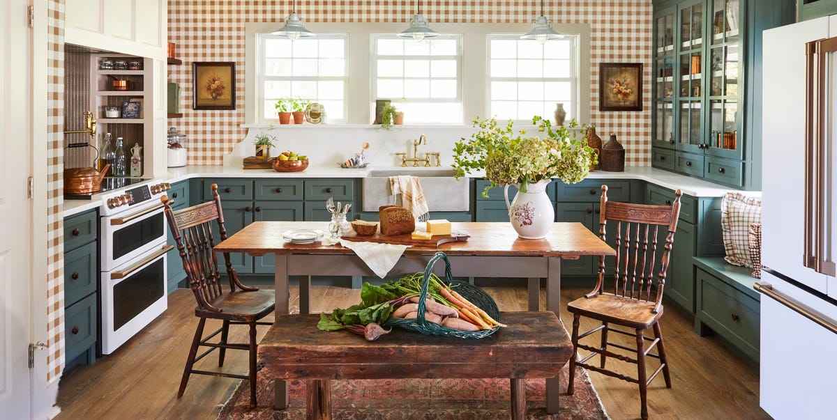 The decade that made mauve and pastels popular doesn’t easily translate—nor should it, arguably—into today’s country kitchens. For painting walls and cabinets, designer Christina Salway says she’s drawn to more muted colors—ochre, clay pink, or dusty sage. “I kind of joke about it, but you want all the colors to have a little bit of mud in them. I am really careful to stay away from true pastels, so it doesn’t feel like an Easter basket.”