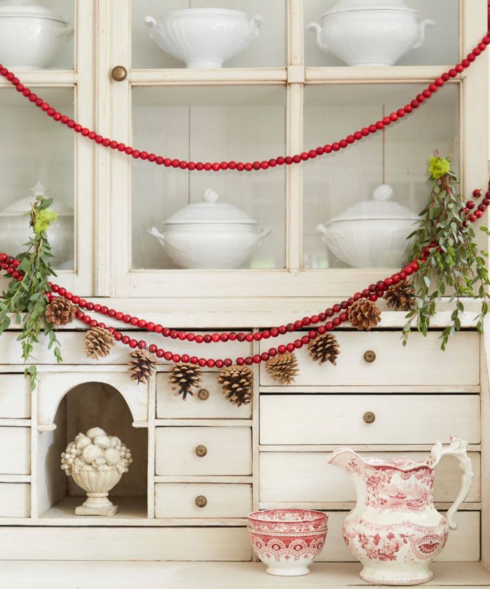 Pinecone decorations aren’t just for outdoors. You can use them to deliver seasonal spirit to every room in the house. Tie pinecones and evergreen clippings around glass jars with twine to turn kitchen countertops into a festive vignette.