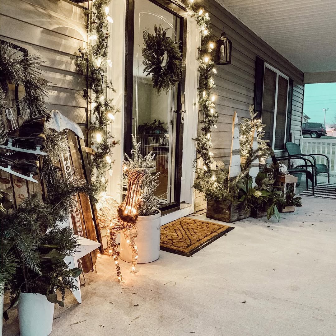 This porch is pure magic after dark. @countrygirrllife wraps the entry in glowing garlands, vintage sleds, and an illuminated reindeer that feels straight out of a small-town Christmas parade. It’s cozy, classic, and dripping in old-school holiday charm.