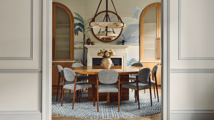 Dining room design begins with understanding the space’s function to the fullest, says Kartheiser. “When I start designing a dining room, I want to first get a feel for how my clients will utilize the space – and we get specific. I want to hear about what weeknight dinners look like, if they ever eat at the kitchen island, how often they entertain, and how many people they frequently host,” she says.