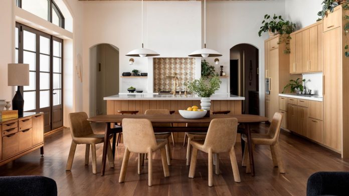 Dining room design begins with understanding the space’s function to the fullest, says Kartheiser. “When I start designing a dining room, I want to first get a feel for how my clients will utilize the space—and we get specific. I want to hear about what weeknight dinners look like, if they ever eat at the kitchen island, how often they entertain, and how many people they frequently host,” she says.