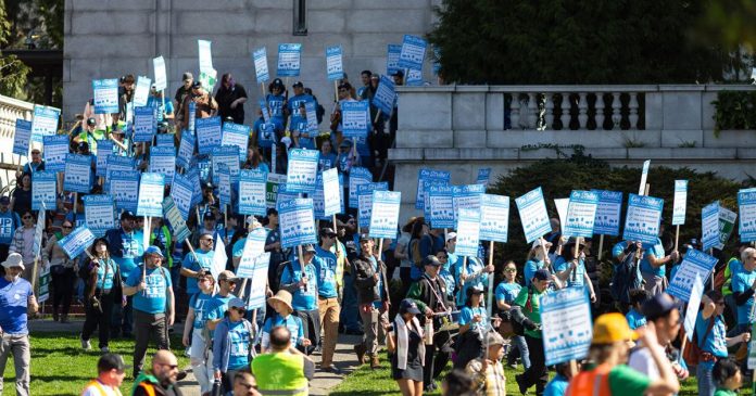 According to AFSCME, staffing shortages and “uncompetitive job quality” have led to more than 13,000 UC service workers leaving their jobs in the past three years. AFSCME further cited a 10% decline in real wages and said some members are forced to sleep in their cars or rely on government housing subsidies.