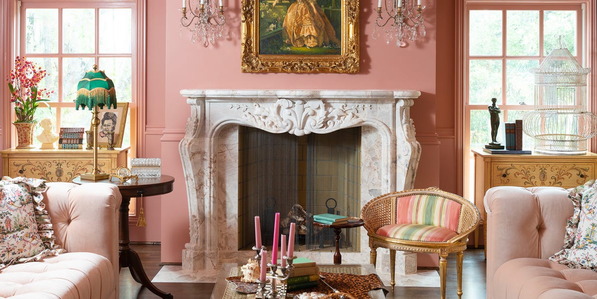 In this colorful New York apartment, designer Samantha Stathis Lynch chose a soft pink living room paint color called Tailor Tack by Farrow & Ball, using it on other parts of the home as well. The client wanted to use the spring cherry blossoms in Central Park as inspiration for the interior. “There’s nothing more uplifting than seeing the first pops of vibrant green shoot up in the center of the gray city,” Stathis Lynch says.