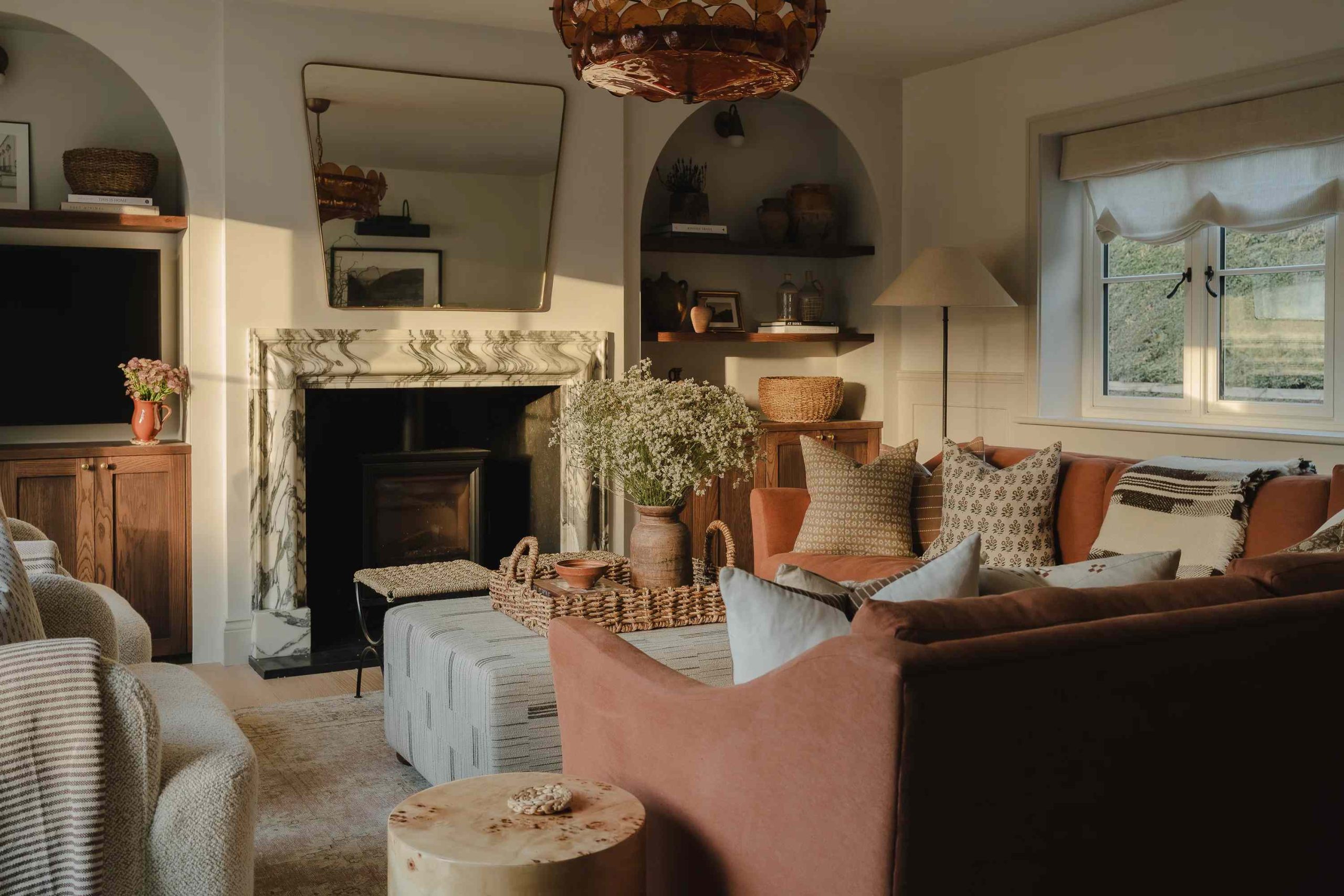 Joyner explains that curves and softer corners and edges make room for “lived-in imperfection,” which is far cozier and less museum-like. She suggests embracing this through handcrafted items, plaster walls, and rounded furniture.