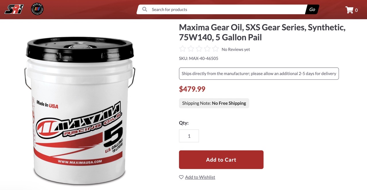 Gear oil and transmission fluid costs $96 per gallon, and the driveline will take just under one gallon per race, bringing your season budget to $3,168