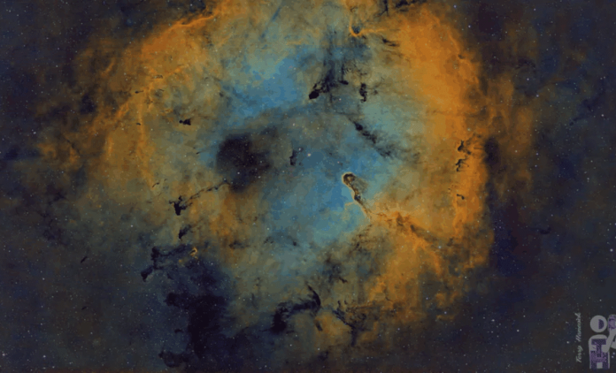 “The image highlights various celestial elements, including a notable emission nebula, by contrast against the bluish cavity that fills the center of IC 1396,” Hancock told Space.com in an email.