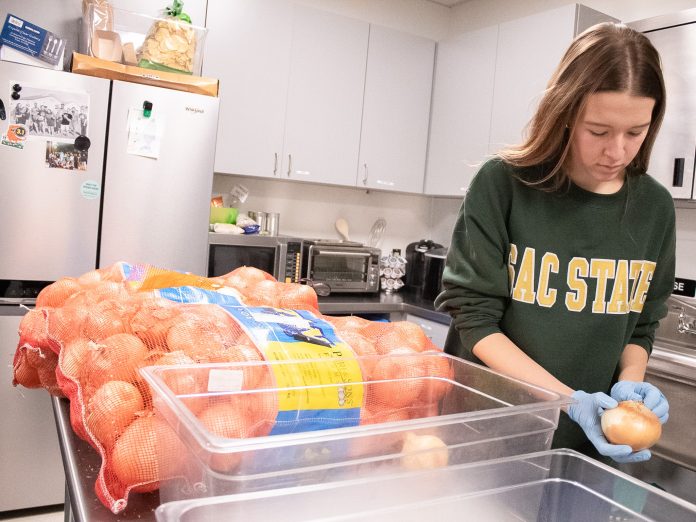 At Sacramento State’s ASI Food Pantry last week, transfer student Tylor Williams was picking up groceries — produce, a few cans of tuna and Impossible Burgers.