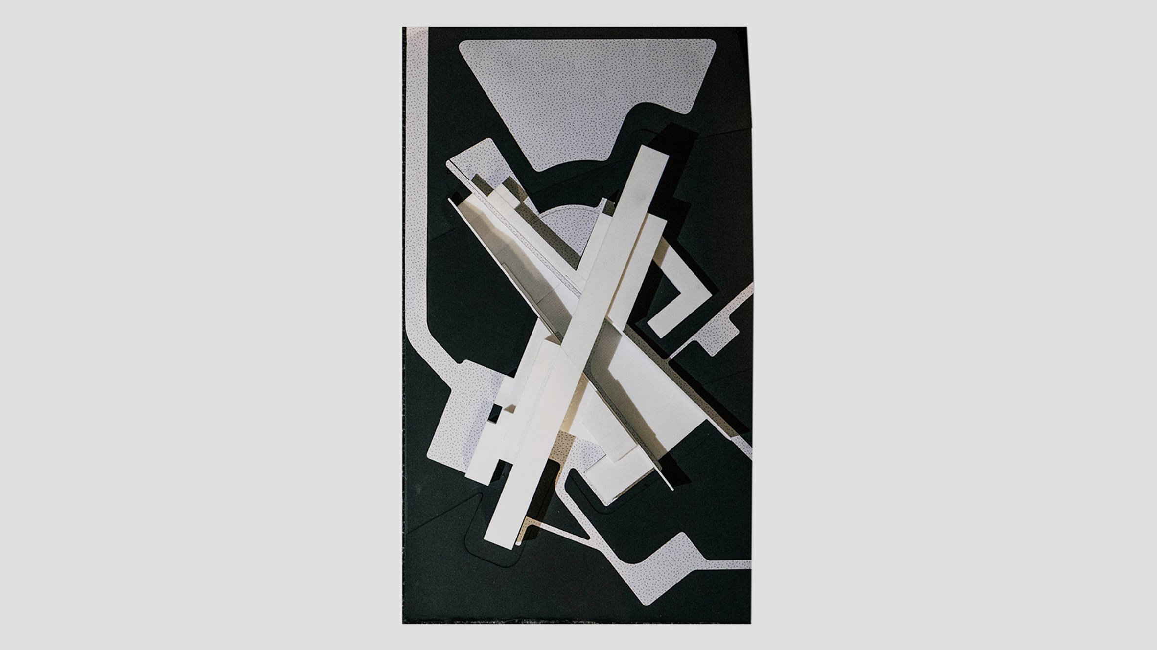 “Inspired by previous massing explorations, the design uses two primary axes to establish visual and physical relationships across the site – linking exhibition spaces through two differentiated levels of circulation that define distinct spatial qualities and experiential sequences.”