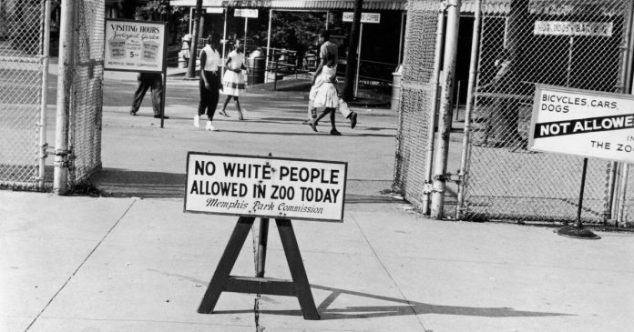 In John F. Glanton’s striking “Pool Match,” from the 1940s, the hats alone summon an era; so does the Memphis Park Commission sign “No Whites Allowed in Zoo Today” in a 1953 photo by Ernest C. Williams.
