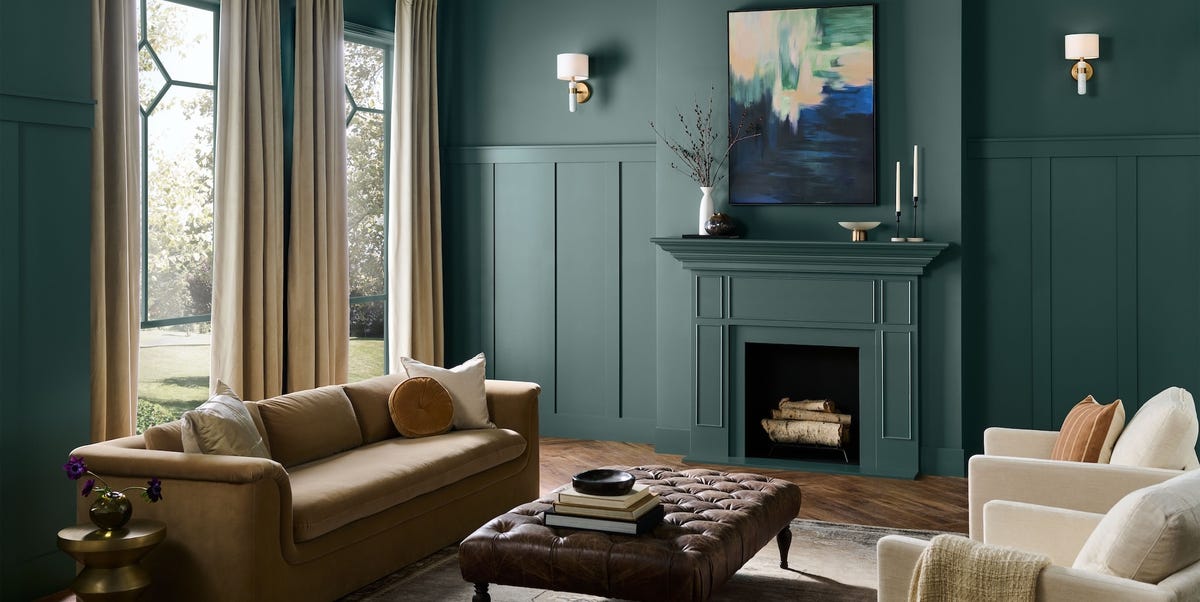 ✔️ Choose the right hue. Consider the room’s size and how natural light interacts with the space before making a final decision. The color also sets the mood of the space. “Soft, muted tones create a soothing effect, while deeper, richer colors add drama,” says Gowler.