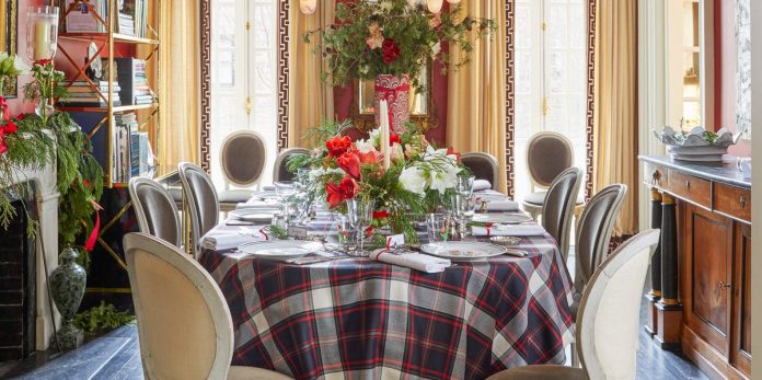 “It’s a feeling more than a look—cozy, elegant, and deeply nostalgic,” says Konrad. “It’s roaring fireplaces, tartan blankets, classic Christmas jazz music, polished silver, and mahogany wood. It feels lived in and timeless, like a country estate during the holidays.”