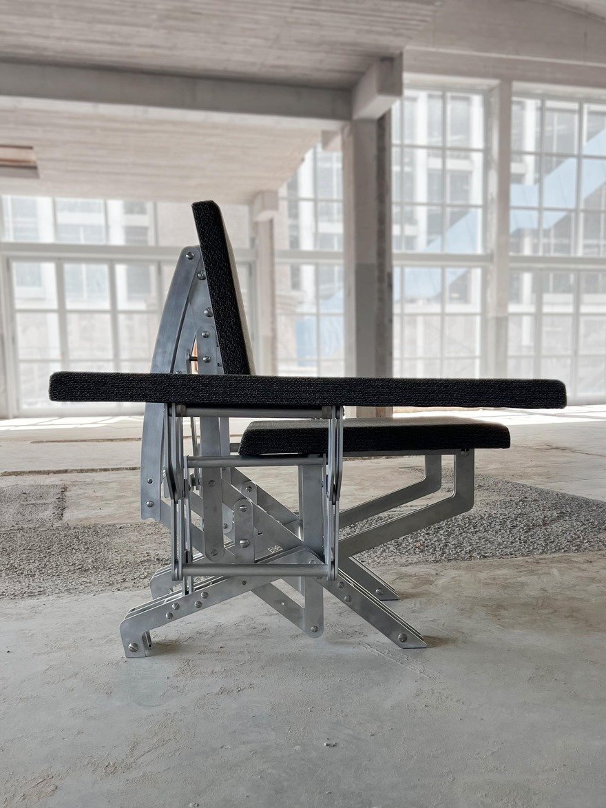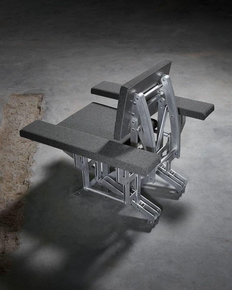 In the video, you can see how the large surface responds to pressure and weight, activating the mechanism and transforming the chair’s shape. A playful combination of functionality and design.