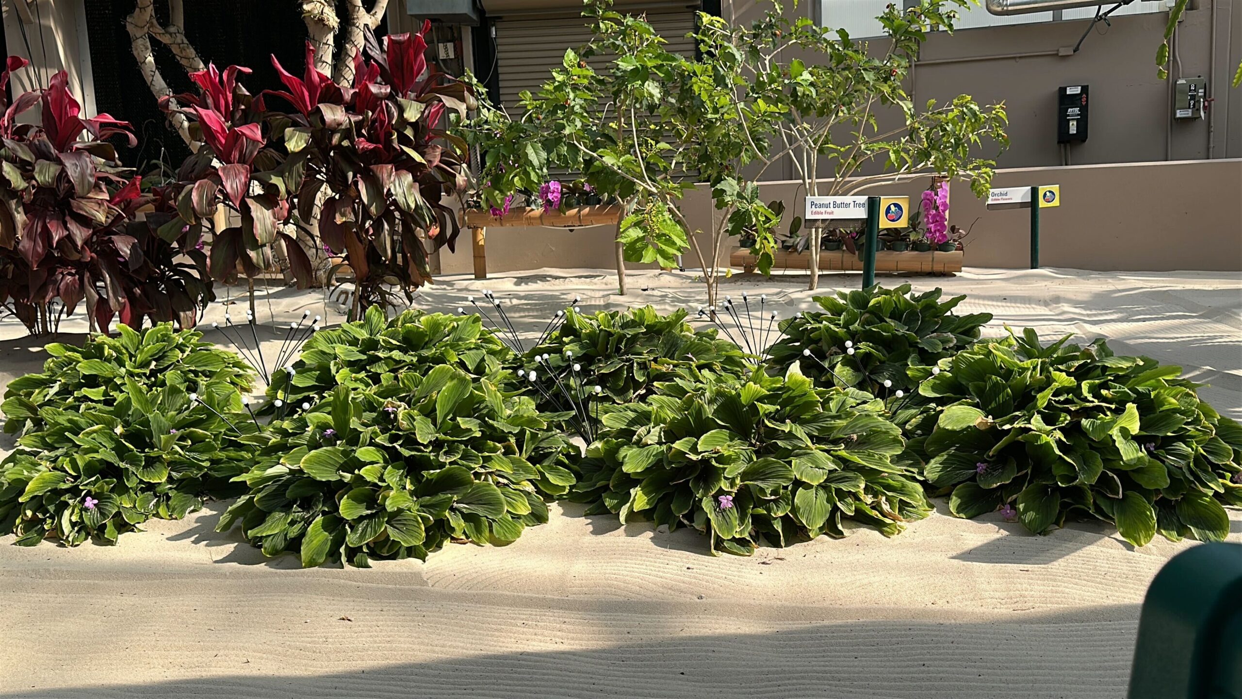 There are a few, standing round lights near the low-lying plants by the Peanut Butter Tree, for instance. Other plants have tall, reed-like lights poking out that are easy to miss while all the lights are on in the greenhouse.