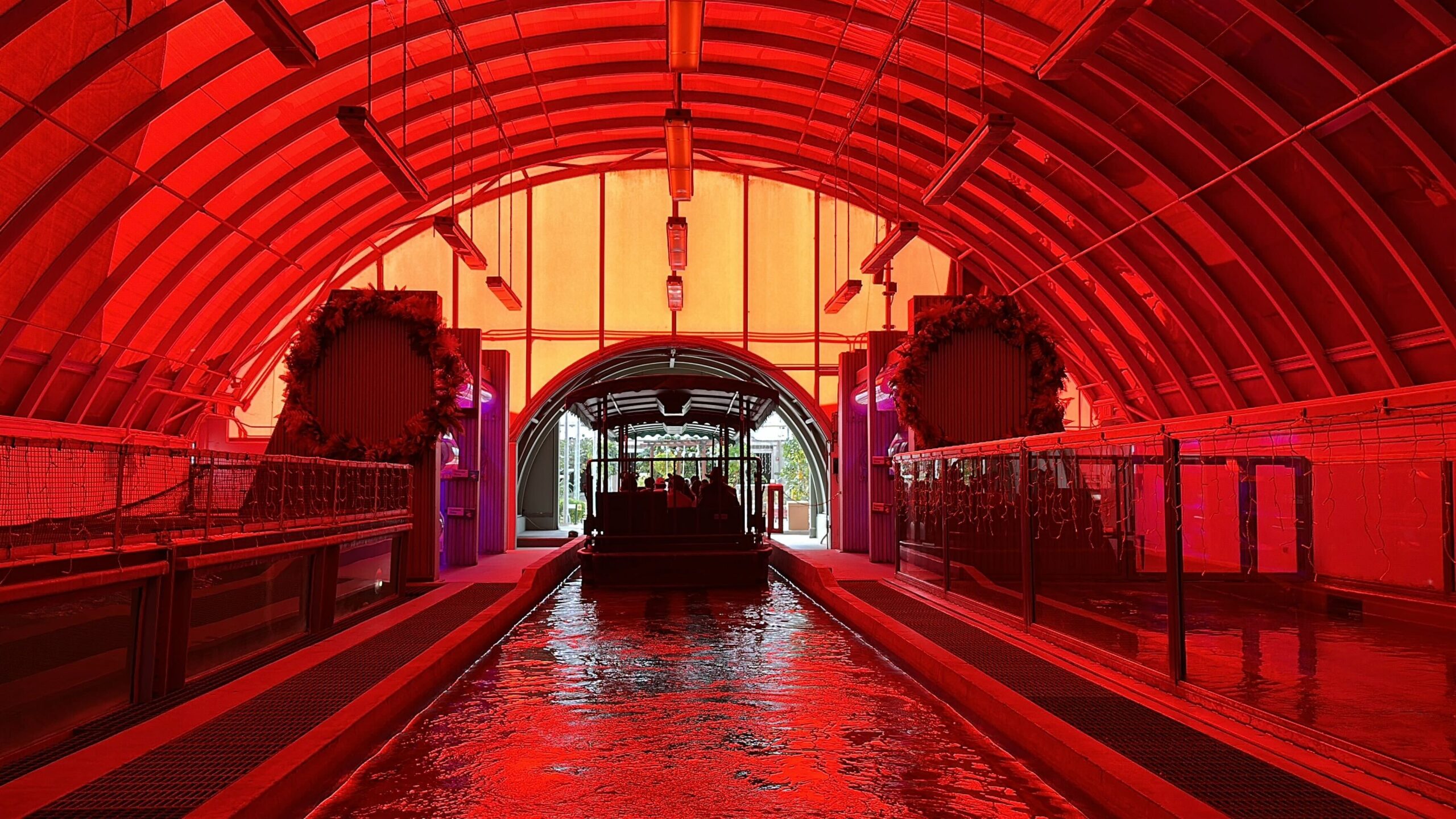 Throughout the greenhouse, you’ll see lights hanging everywhere from the columns and piping structures to the back walls. The cast members are, truly, decking the halls.