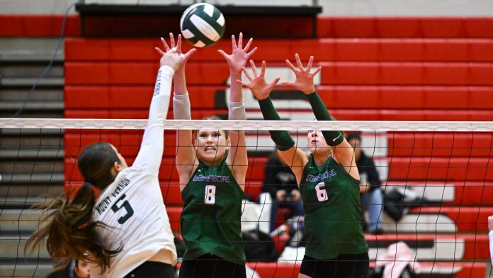 The 10th-seeded Mount Vernon Bulldogs advanced to the final consolation round and are one win away from a state tournament berth, defeating the third-seeded Edmonds-Woodway Warriors in five sets. Mount Vernon will next face top-seeded Stanwood at 10 a.m. Saturday, Nov. 15 in a loser-out/winner-to-state match at Stanwood High School. The Edmonds-Woodway Warriors season is over with a 12-7 final record.