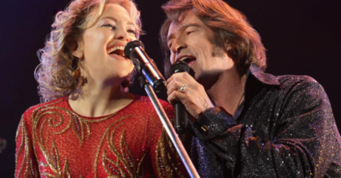 Kate Hudson and Hugh Jackman play Mike and Claire Sardina, performers in a Neil Diamond trobute band. (Universal Pictures)