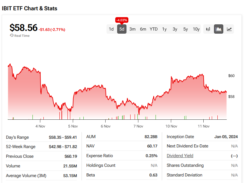 Today, the IBIT was down 2.77% at $58.54. The main drag was the price of Bitcoin, which dropped 2.72% to $103,107.83.