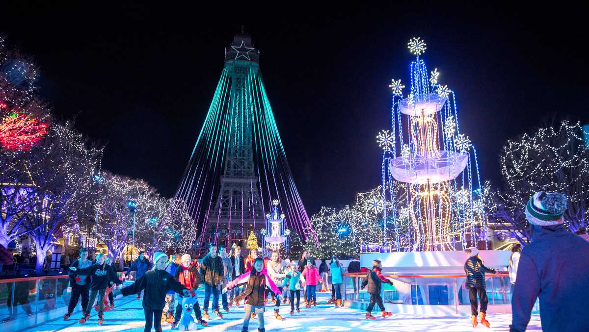 The festival features a spectacular tree lighting on its Eiffel Tower, 13 live shows, ice skating on Snow Flake Lake, specialty photo ops with characters, cookie decorating with Mrs. Claus and more.