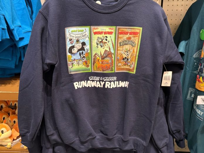 A new Mickey & Minnie’s Runaway Railway-themed sweatshirt was spotted at Disneyland Resort.