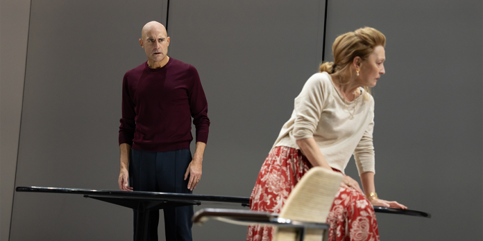 With a gleaming set, casual language, and chic cynicism, Robert Icke’s adaptation signals Oedipus‘s modern relevance in ways that are only sporadically truthful or interesting. But Mark Strong and Lesley Manville’s turns as Oedipus and Jocasta give this take on the Greek classic a grounded yet otherworldly sense of magnificent devastation.