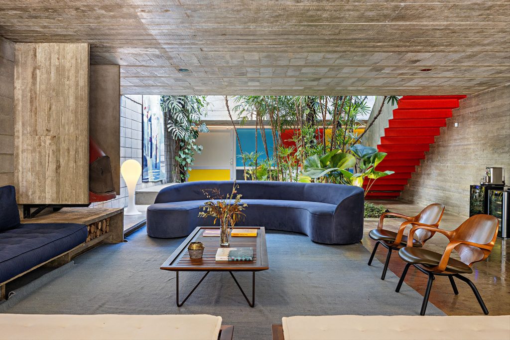 Burle Marx’s original garden design remains a guiding force, unfolding from the entry toward a heated pool framed by mature jabuticaba trees. It continues its dialogue with the architecture, allowing the original Brazilian modernism to sit comfortably in the present. It’s listed for $1,992,032 USD with Bossa Nova Sotheby’s International Realty.