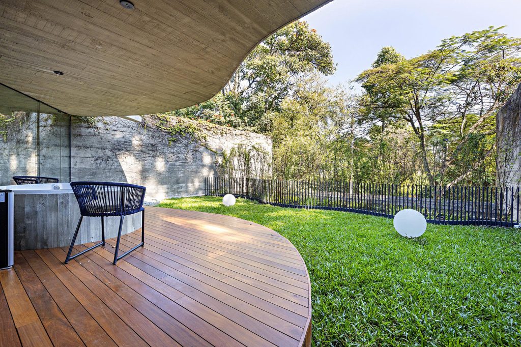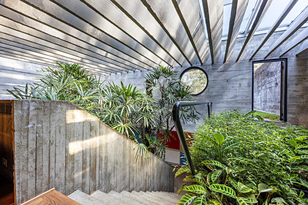 On a quiet, tree-lined street in the cultural hotbed of Alto de Pinheiros in São Paulo, this 1978 residence carries the unmistakable language of the late architect Ruy Ohtake — expressive concrete, sculptural geometry and an architectural rhythm shaped by light. Recently renovated by his son Rodrigo Ohtake (both are descendants of artist Tomie Ohtake), the home has an intact brutalist core and refined relationship to the landscape.