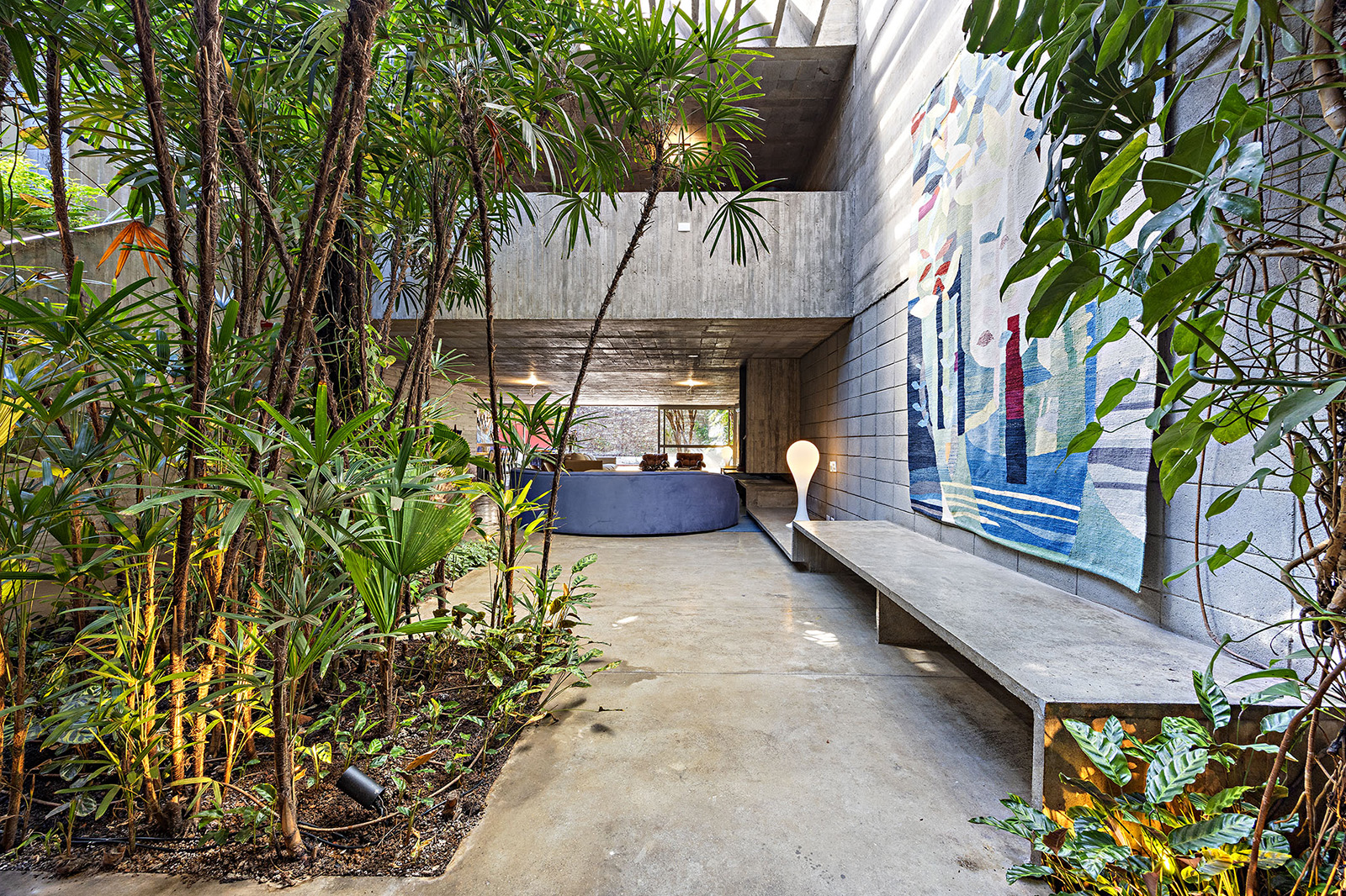 On a quiet, tree-lined street in the cultural hotbed of Alto de Pinheiros in São Paulo, this 1978 residence carries the unmistakable language of the late architect Ruy Ohtake — expressive concrete, sculptural geometry and an architectural rhythm shaped by light. Recently renovated by his son Rodrigo Ohtake (both are descendants of artist Tomie Ohtake), the home has an intact brutalist core and refined relationship to the landscape.