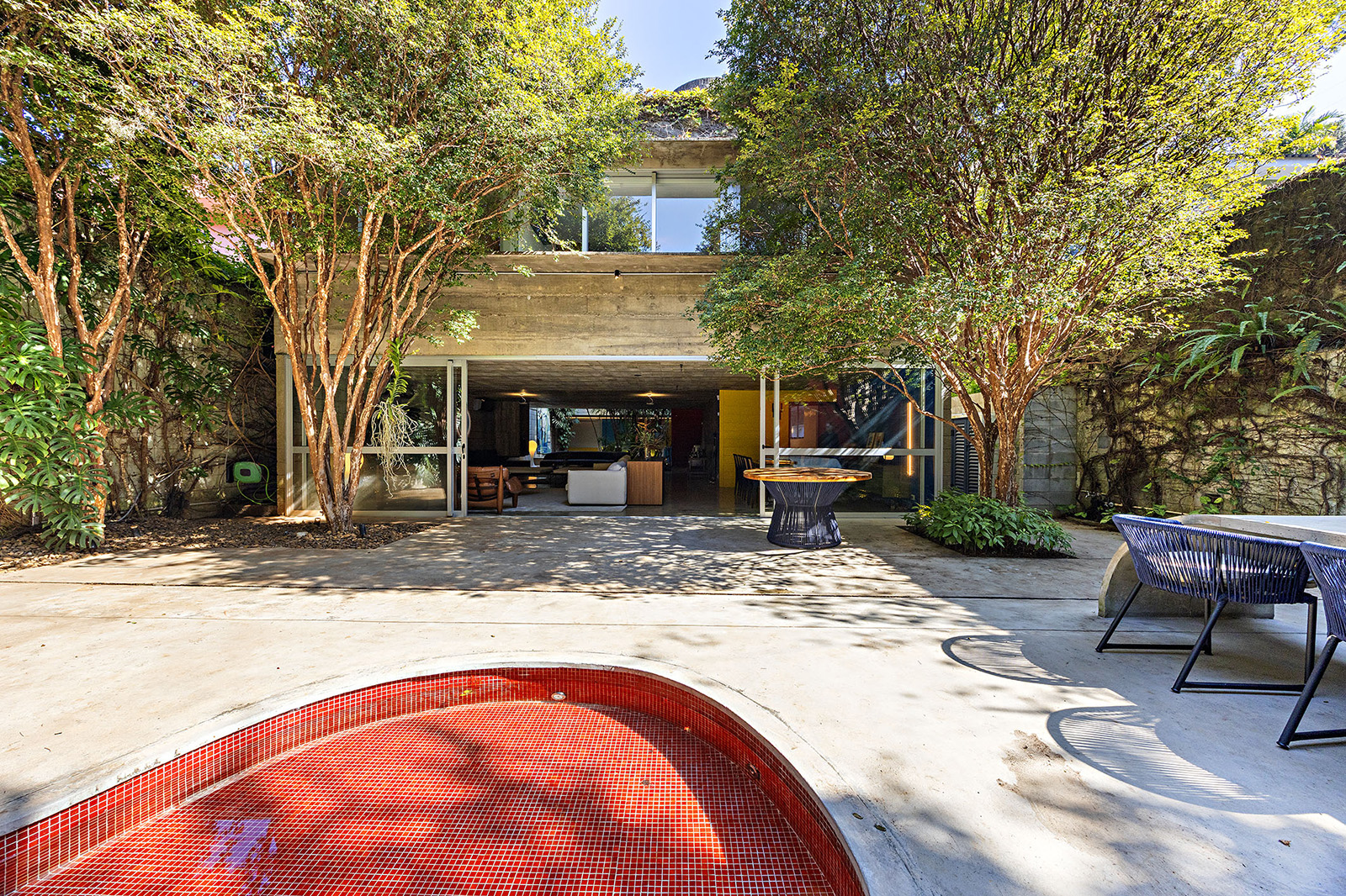 Burle Marx’s original garden design remains a guiding force, unfolding from the entry toward a heated pool framed by mature jabuticaba trees. It continues its dialogue with the architecture, allowing the original Brazilian modernism to sit comfortably in the present. It’s listed for $1,992,032 USD with Bossa Nova Sotheby’s International Realty.