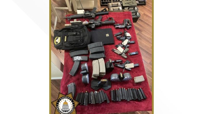 Investigators also found numerous firearms that had been modified from their original California-compliant configuration, according to the sheriff’s office. Officials said a short-barreled rifle without a serial number, sometimes called a “ghost gun”, was hidden in the attic, along with hundreds of firearm parts and components. Deputies said they also found multiple smoke grenades, flash bangs, and deployable pepper spray smoke grenades.