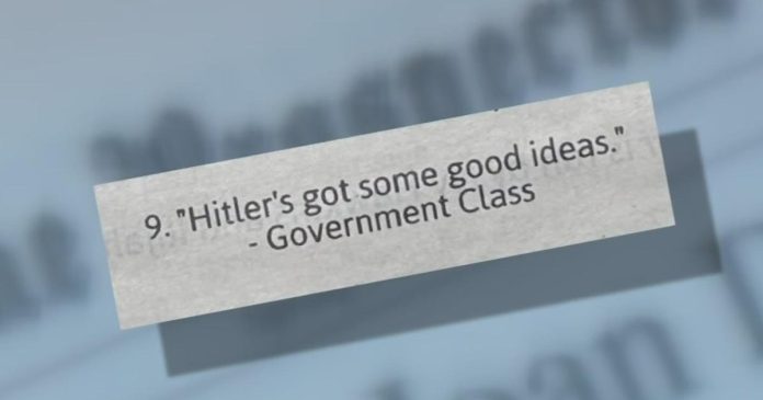The quote printed in the C.K. McClatchy High School paper, The Prospector, reads: “Hitler’s got some good ideas.”