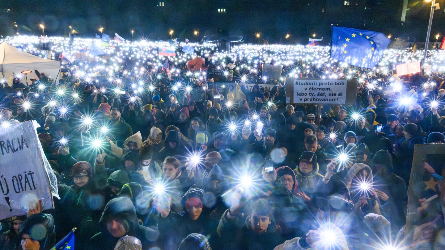 Rallies and marches took place in dozens of communities. The protesters in Freedom Square in the rainy capital, Bratislava, chanted, “We have enough of Fico,” “We want a change” and “Resign.”