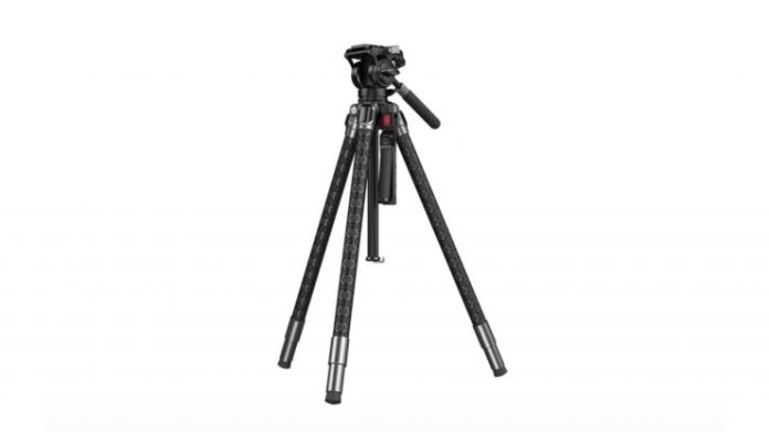 The lightweight tripod is constructed with durable aluminum alloy and, with the fluid head, has an adjustable height range of 9.8 to 66.1″.