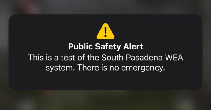 On Tuesday evening, public safety staff with the city of South Pasadena were performing an internal test of the WEA system when the message was accidentally sent to phones across the county, city spokesperson Jennifer Colby said.