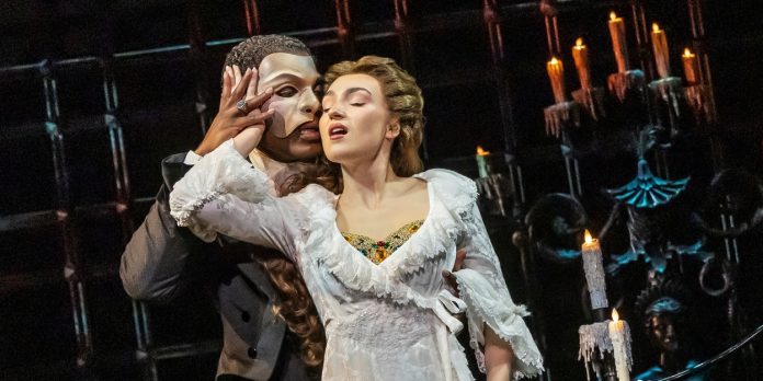 Isaiah Bailey leads the company in the title role of ‘The Phantom of the Opera’ with Jordan Lee Gilbert as ‘Christine Daaé,’ and Daniel Lopez as ‘Raoul,’ Midori Marsh as ‘Carlotta Giudicelli,’ William Thomas Evans as ‘Monsieur Firmin,’ Carrington Vilmont as ‘Monsieur André,’ Lisa Vroman as ‘Madame Giry’ Christopher Bozeka as ‘Ubaldo Piangi,’ Melo Ludwig as ‘Meg Giry,’ and Alexa Xioufaridou Moster as ‘Christine Daaé, at certain performances.