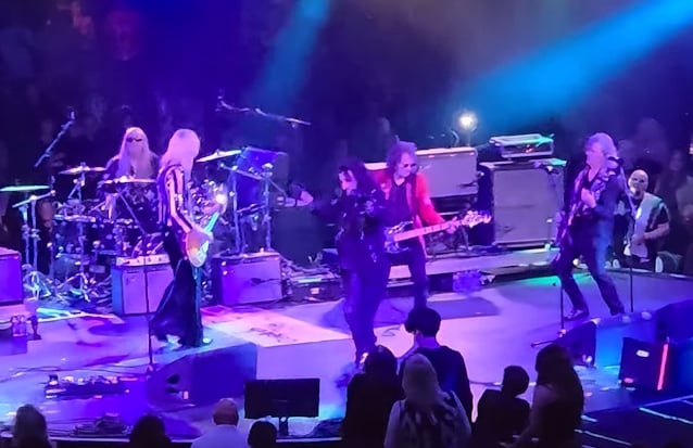 Legendary rocker Alice Cooper reunited with the other surviving members of the original ALICE COOPER band — guitarist Michael Bruce, bassist Dennis Dunaway and drummer Neal Smith — for a short set at last night’s (Saturday, November 15) “Christmas Pudding” event at the Celebrity Theatre in Phoenix, Arizona. Stepping into the late COOPER guitarist Glen Buxton‘s shoes for the performance was Nashville-based guitarist Gyasi Heus, who also played guitar on the recently released “The Revenge Of Alice Cooper”, the first full album by the original ALICE COOPER band since 1973’s “Muscle Of Love”. They played a mix of their hits along with songs from “The Revenge Of Alice Cooper”.